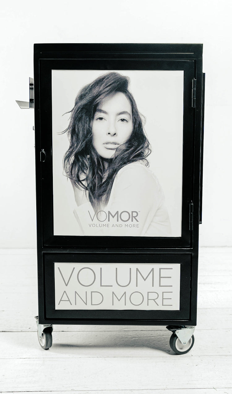 With the purchase of certain packages, salons receive the VoMor® Cart. Our Cart allows you to store VoMor® Hand Sewn and Tape In extensions. On hand inventory enables you to offer a 15-minute Tape In hair thickening service in the moment.